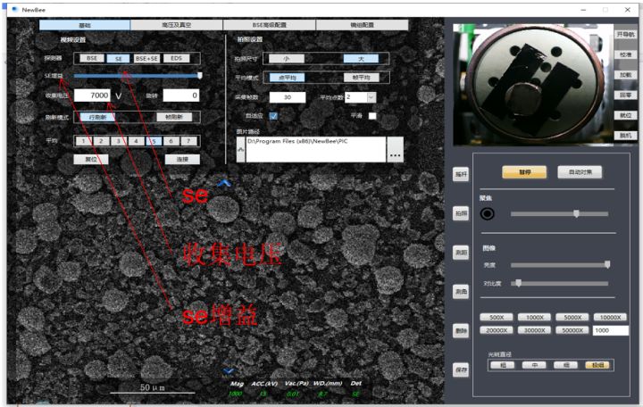 三、臺(tái)式掃描電鏡切換SE模式拍攝圖片方法